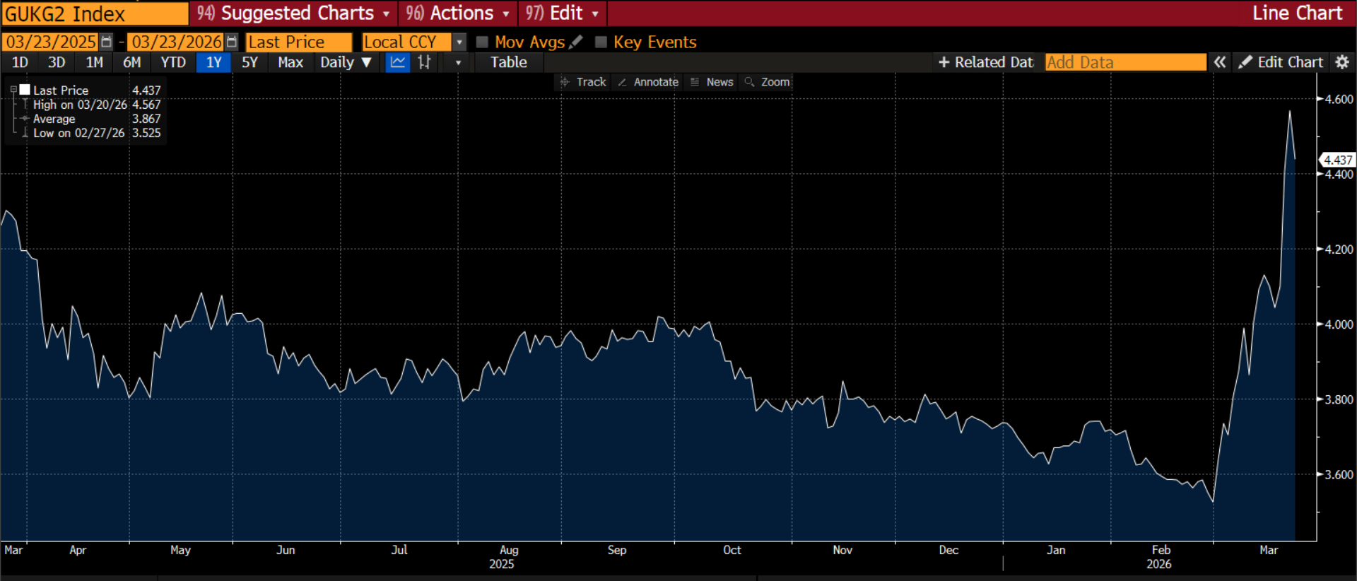 One person who may be relieved that there is a potential step to ending this crisis is Rachel Reeves. At one point the surge in UK borrowing costs was poised to knock £8bn from her fiscal headroom. The 12 bp decline in the 2-year yield in the last 90 minutes is welcome respite, but yields are still higher by 90bps since the start of this conflict. The UK government will be hoping that the conflict continues to deescalate and a long term resolution found to stabilize UK borrowing costs. If the movement in UK yields in recent days had continued it could have led to a fiscal crisis.
