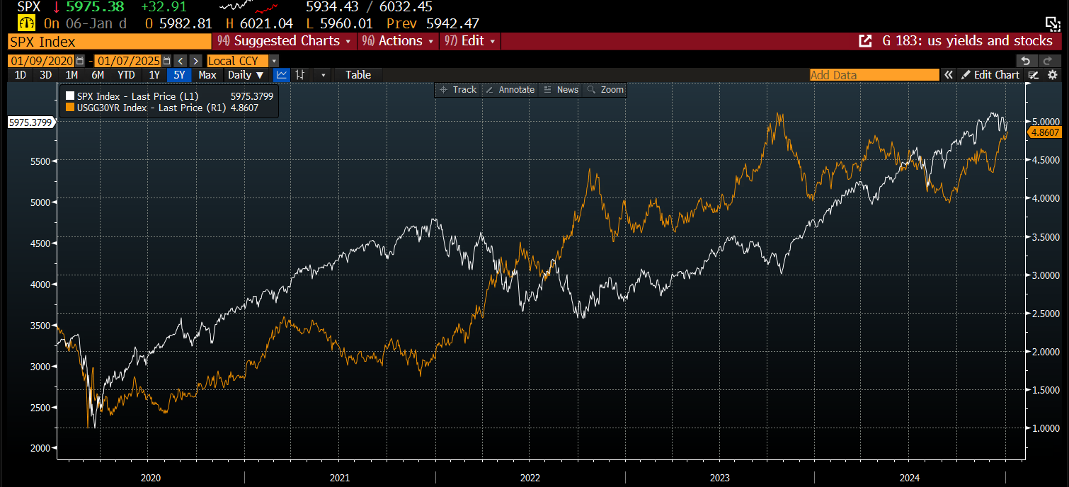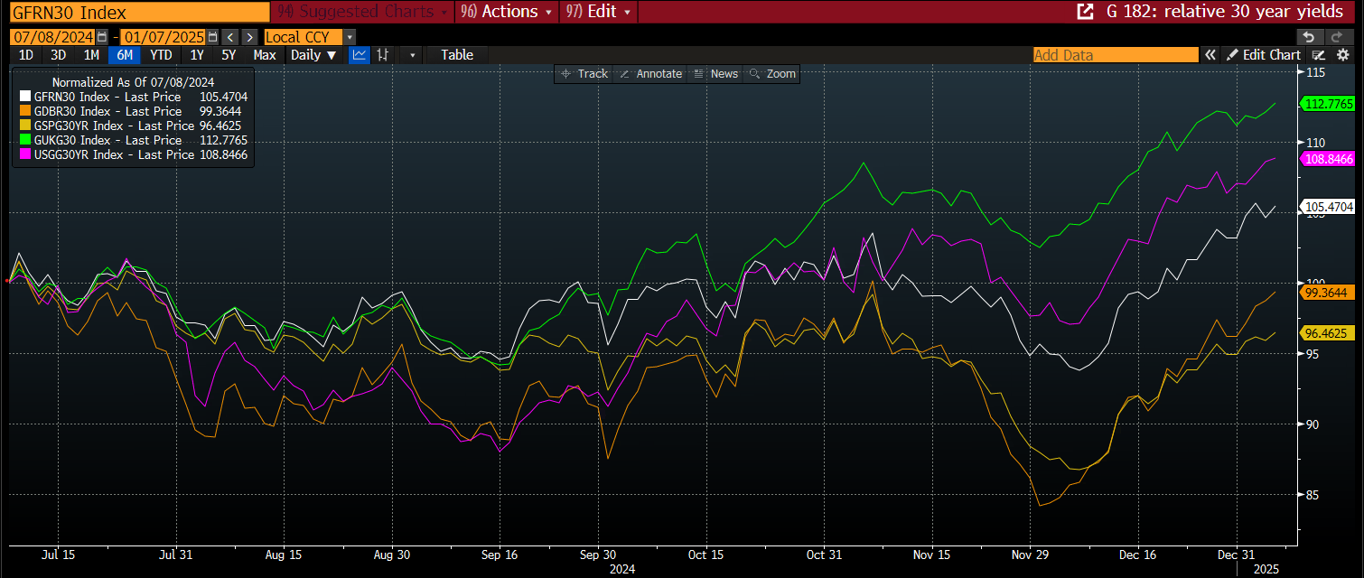 We are not at worrying levels for 30-year yields yet, instead, this is a sign that budget deficits could be a trigger point for financial markets in 2025. The risk is that public finance data in the coming months will be scrutinized by investors and if they don’t like what they see then it may trigger a bond market sell off. Bond vigilantes are not stalking the market yet, but they are watching from the sidelines.