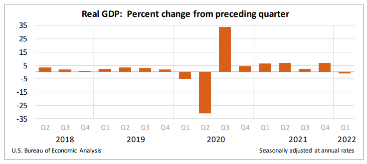 US economic activity unexpectedly contracted in the first quarter of 2022. Source: US Bureau of Economic Analysis