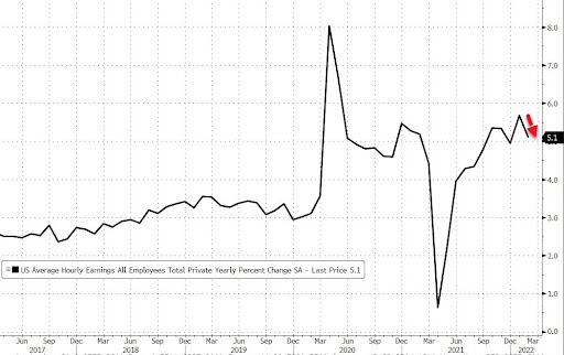 Wage growth lost its momentum last month. Source: Bloomberg via ZeroHedge