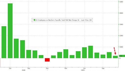 The US economy added just 210k jobs in November, which is the weakest monthly reading of the year so far. Source: Bloomberg via ZeroHedge