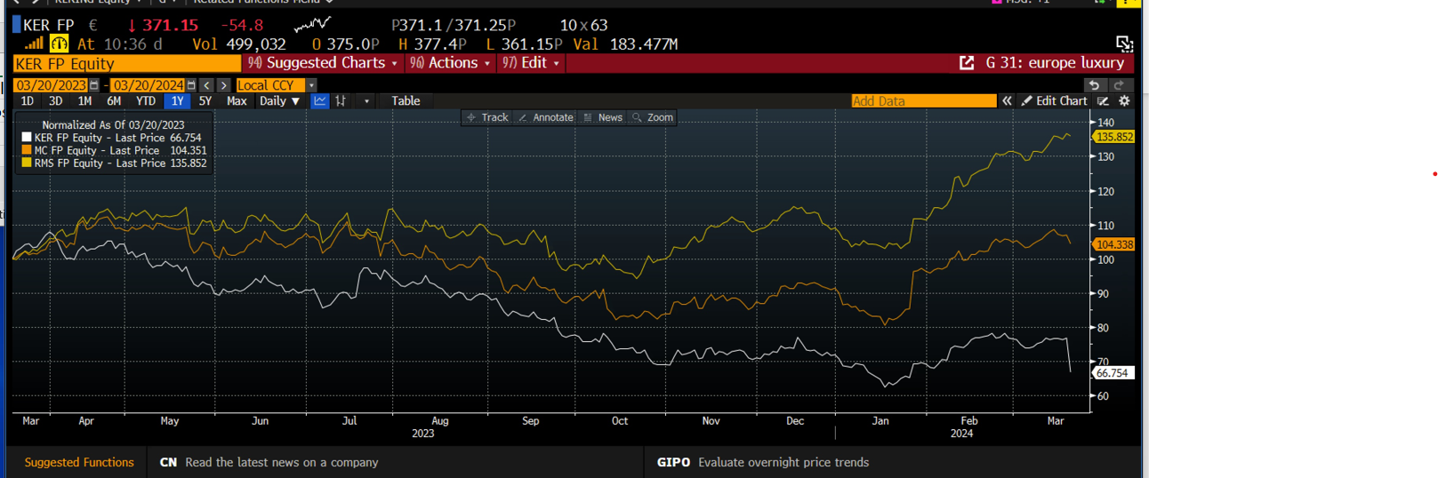 Chart 1: LVMH and Hermes outperform Gucci owner Kerring