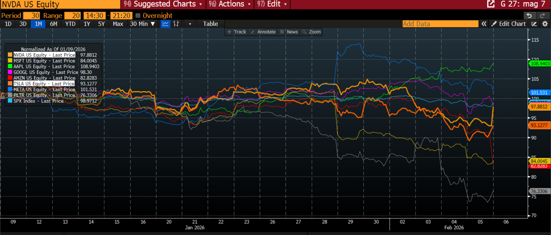 Chart 1: Magnificent 7 over the past month, Apple is leading the way