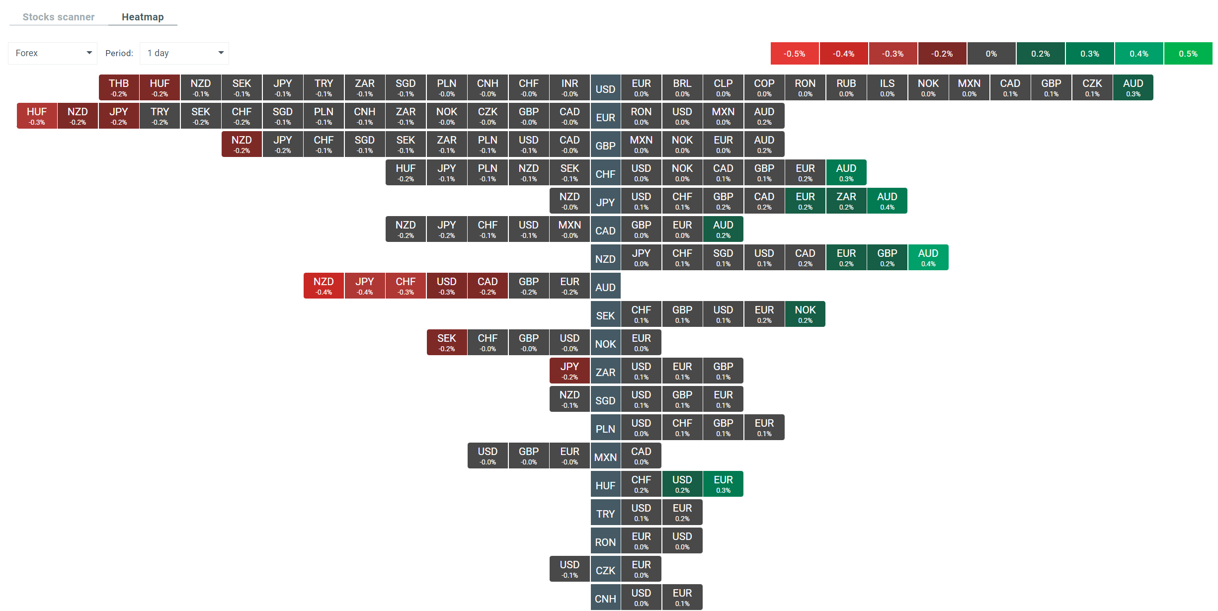 Heatmap of the FX market, which illustrates the volatility on individual currency pairs at the moment. Source: xStation 5