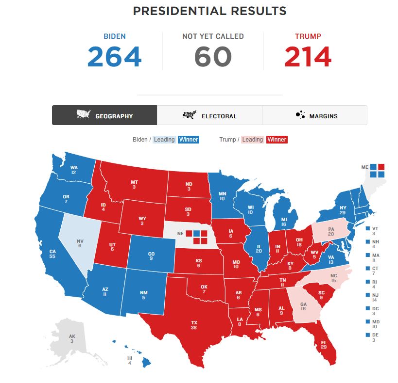 We still do not know who will be the next US president. Electoral vote count remains unchanged at 264-214 in favour of Biden