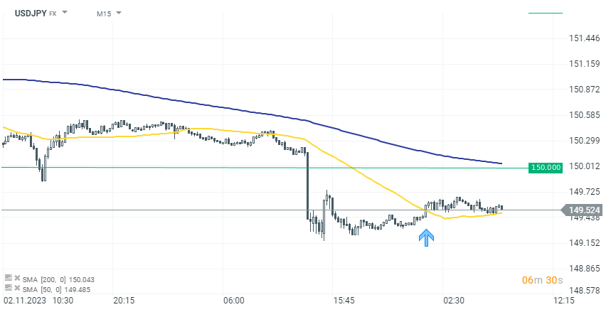 The Japanese yen weakened after the release of the minutes and Ueda's comments. However, the USDJPY has been holding below 150. Source xStation 5.