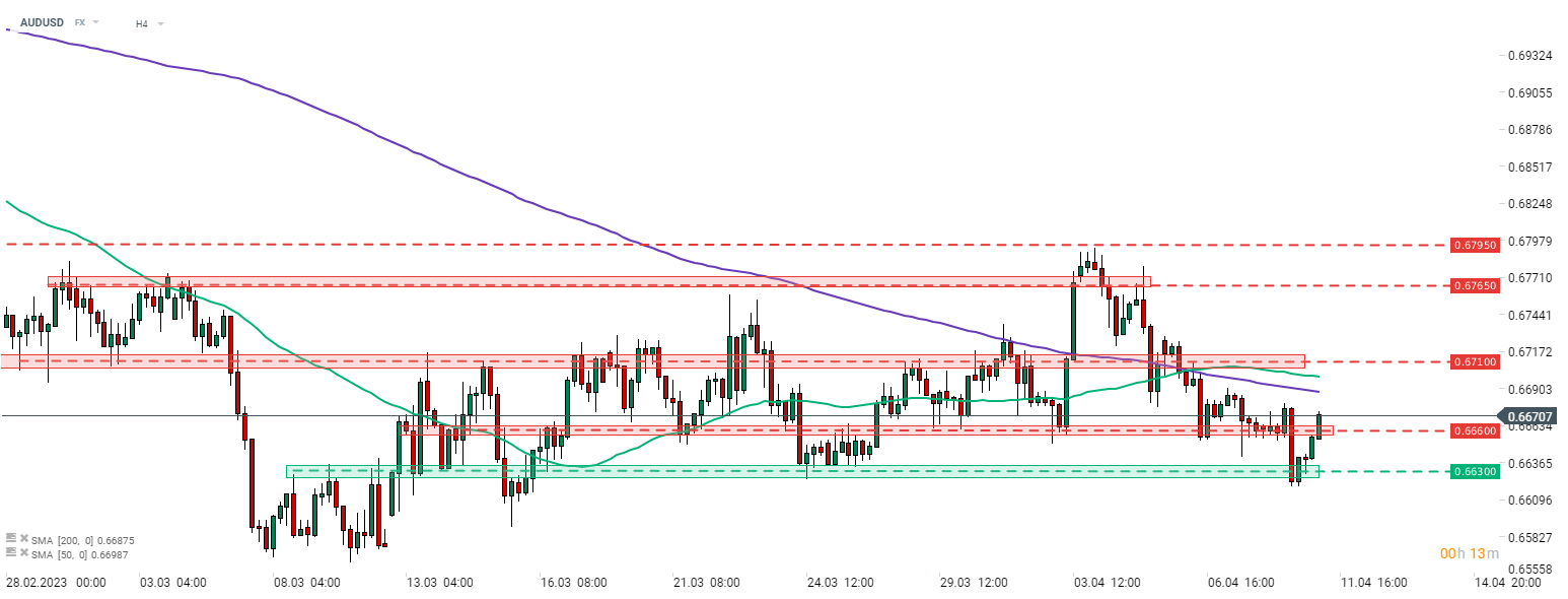 AUDUSD bounced off the 0.6630 support zone and climbed back above the 0.6660 area. Improvement in Australia-China trade relations is driving today's upward move on the pair. Source: xStation5