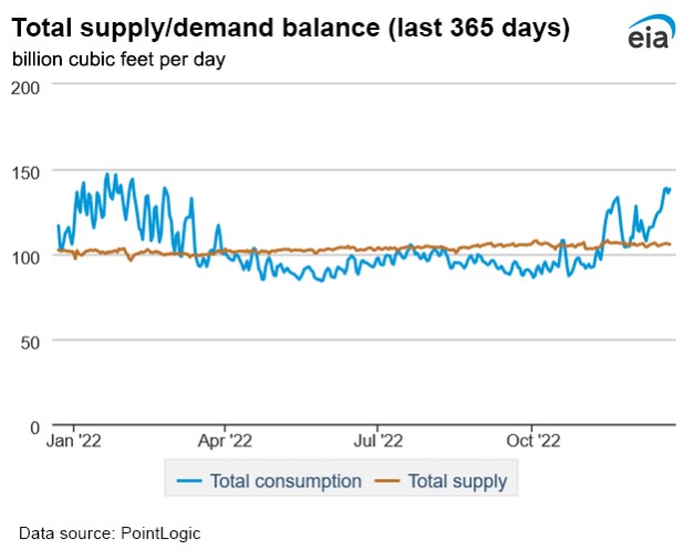 It can be seen that there is a significant increase in demand for heating (residential/commercial). Source: EIA