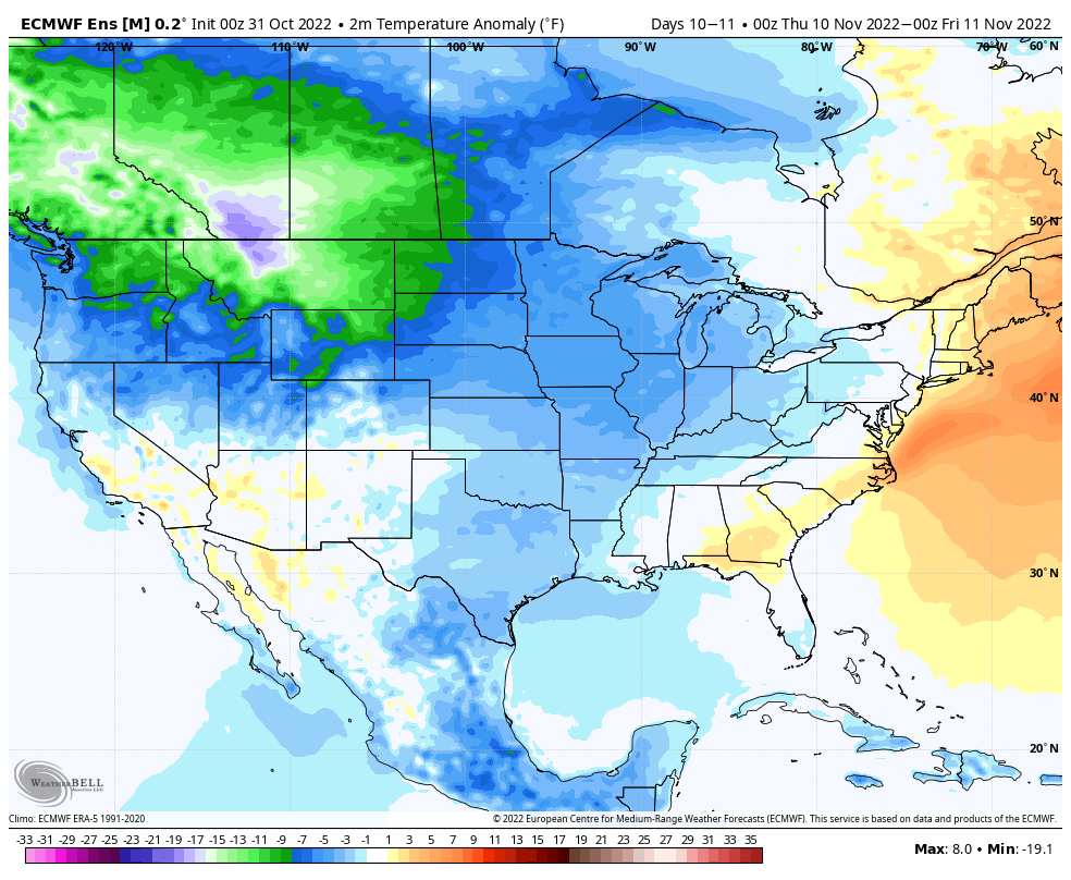 Forecasts for the next week indicate much lower temperatures. Source: ECMRW
