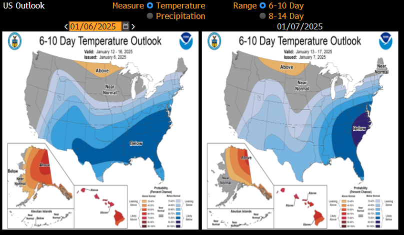 The combination of heightened demand and curtailed production due to freezing temperatures is placing significant strain on supply. Extreme cold can lead to infrastructure disruptions and pipeline freeze-offs, further impacting output. Weather forecasts for the next 6-10 days indicate a continuation of below-average temperatures across key consumption regions. At the current burn rate, analysts project potential storage withdrawals of 200-300 bcf for the current week, to be reported next week.