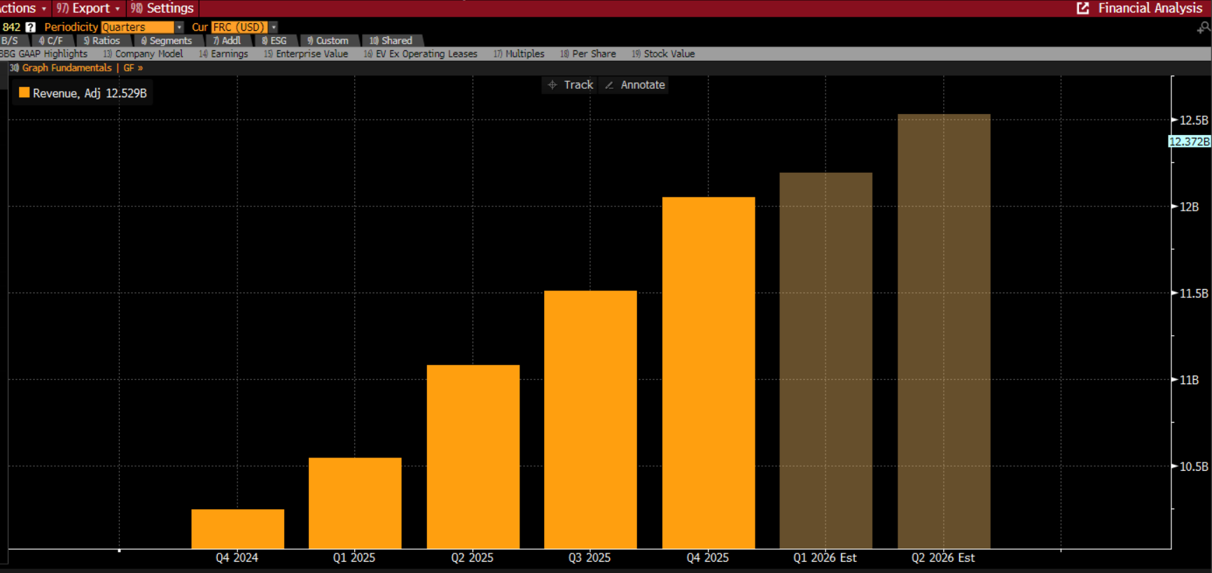 Chart 1: Netflix quarterly revenue and forecasts.