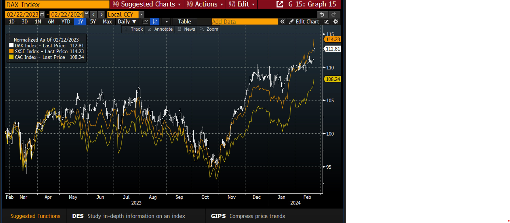Chart: European stock market performance, the Dax is outperforming the Cac, even though German growth is weak