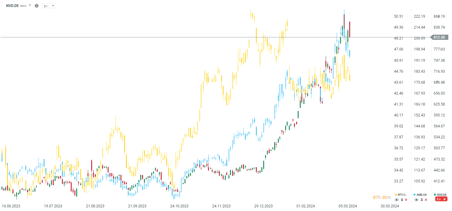 AMD or Intel are trying to catch up with Nvidia, although according to the company's current CEO, even if competitors gave away their chips for free, customers would still continue to buy from Nvidia. Nonetheless, it seems that the biggest risk is coming from the company's biggest customers, although of course the risk is much delayed. Companies leading the way in providing cloud solutions such as Amazon, Google Cloud and Microsoft are expected to have plans to develop their own Chips, which Taiwanese semiconductor manufacturer TSMC could help them with. Orders from Microsoft and Meta accounted for 1/4 of Nvidia's total orders in the last two quarters, which may cause these companies to look for alternatives. Microsoft already boasts its own processors that are optimised for GPT models from OpenAI. Amazon, on the other hand, which is also a significant Nvidia customer is working with UK-based Arm, which is also a rising chip star.