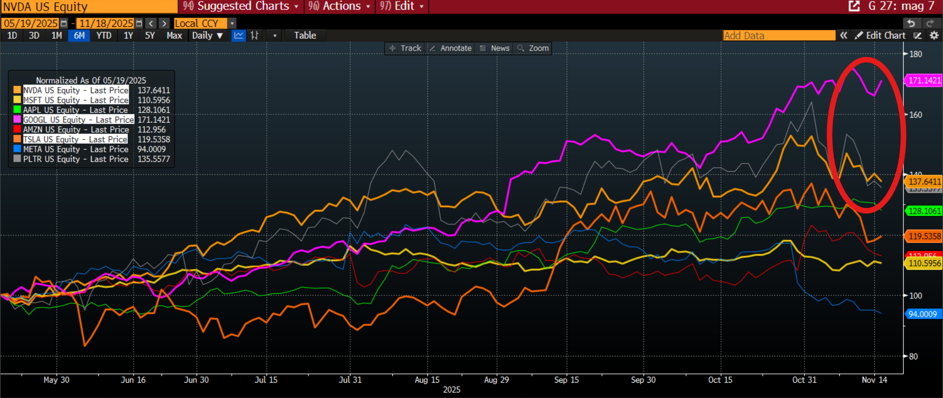 Chart 2: Magnificent 7, divergence is already occurring with Google and Nvidia leading the way.