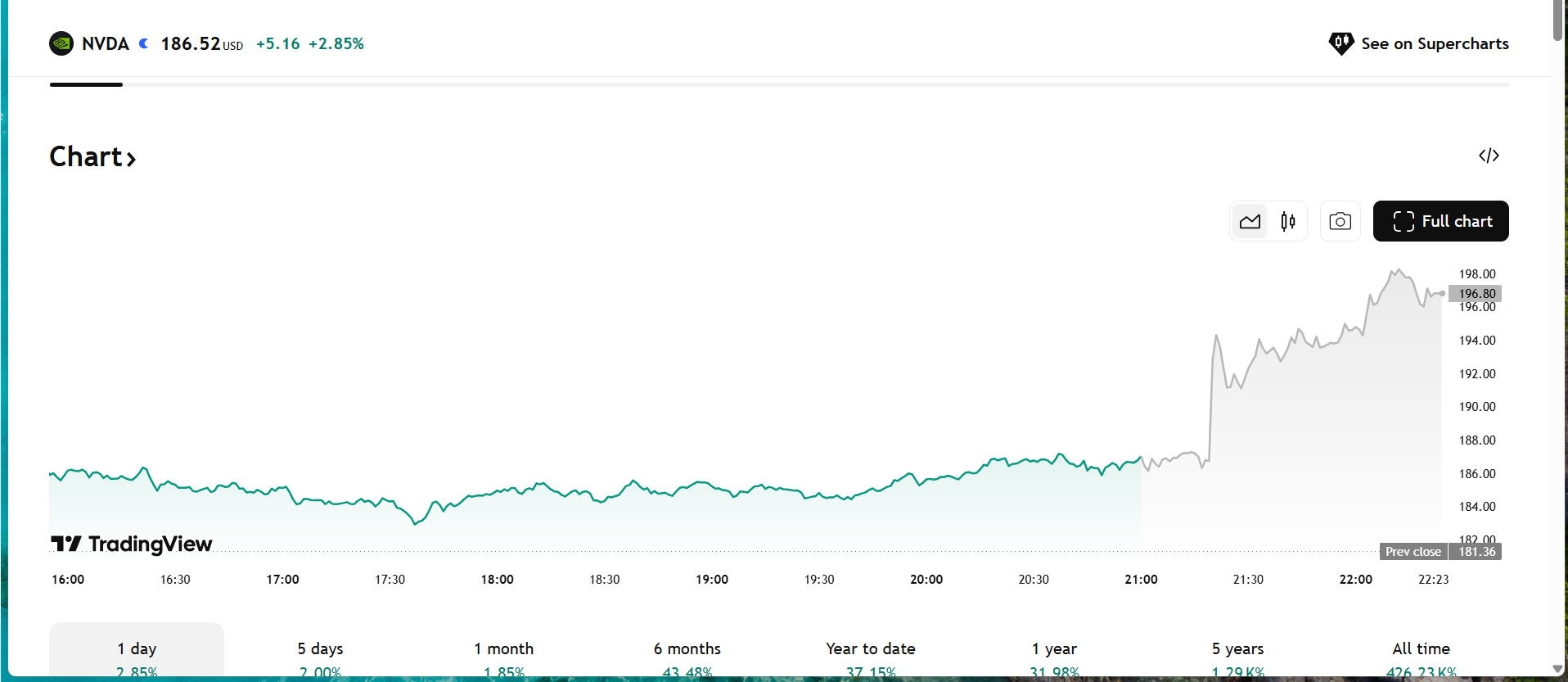 Chart 2: Nvidia’s stock price soared in post-market trading after the earnings release