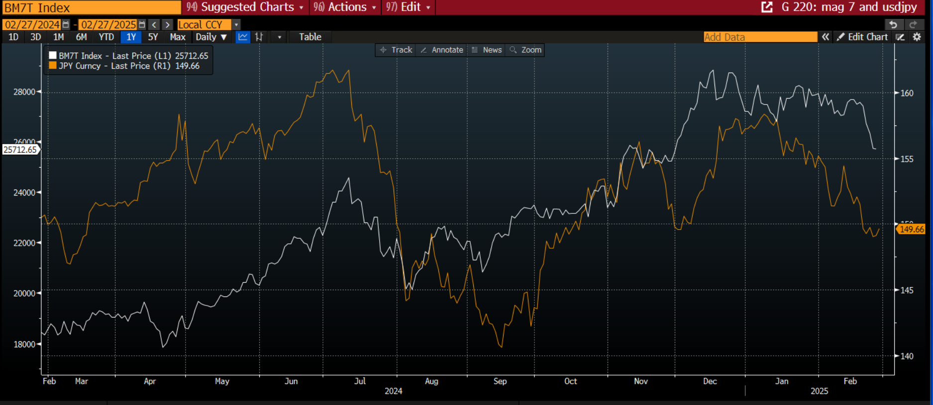 Chart 1: Magnificent 7 and USD/JPY