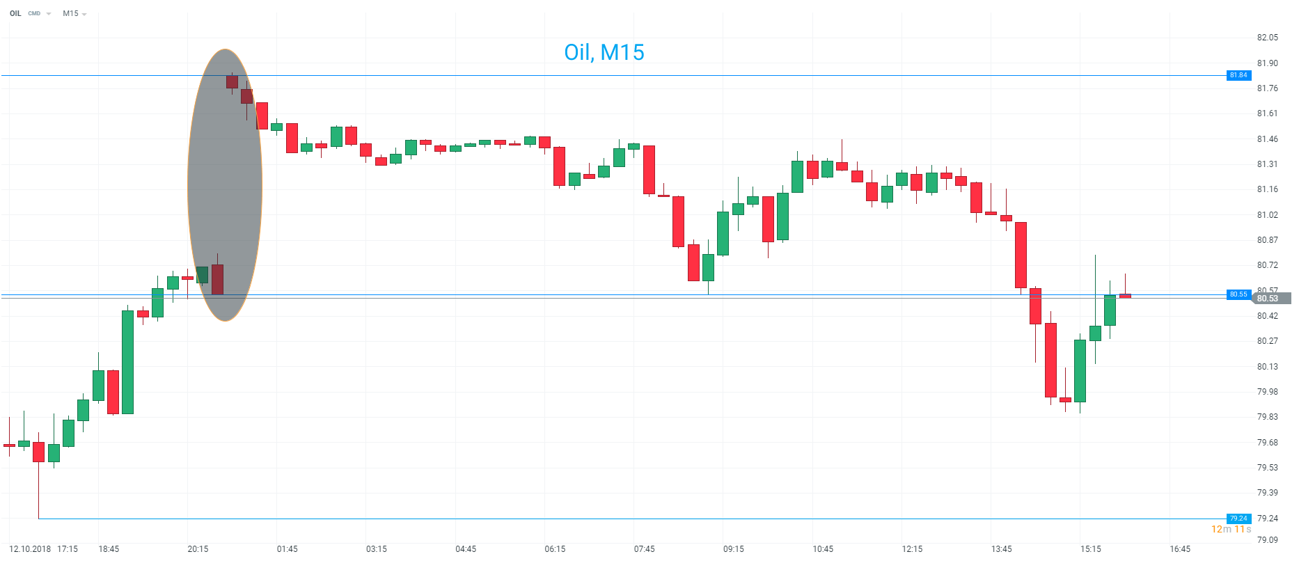 Oil gapped strongly higher over the weekend with the market reopening more than $1 above Friday’s close. Price has since drifted lower however and closed the gap from 80.55. Source: xStation