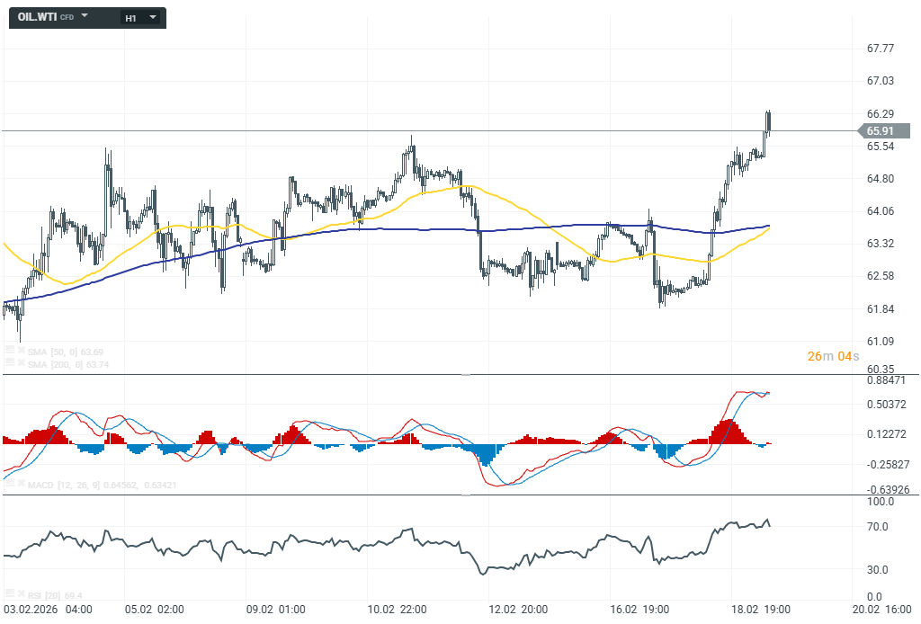 From a technical perspective, oil has rebounded strongly from support in the 62–63 USD area and is now testing key resistance in the 66–67 USD zone. A clear breakout above this level would open the way toward 70.50 USD and could further increase the geopolitical premium in prices. However, in the absence of a clear escalation of the conflict, the market may remain within its existing range, balancing headline risk against macroeconomic fundamentals.