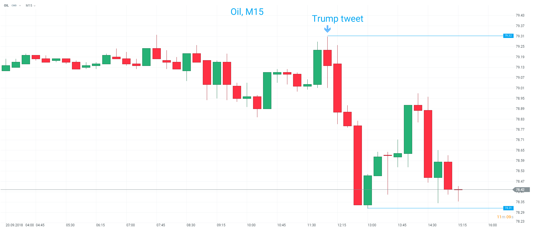 The price of Oil made a clear move lower after Trump’s comments with the market falling almost exactly $1 in the 60 minutes that followed. Source: xStation