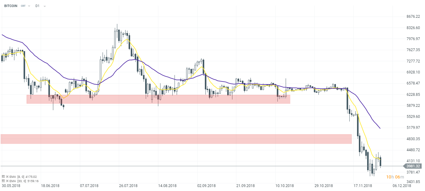 Friday has not been successful for cryptocurrency traders compared to previous days. Major cryptocurrencies have experienced some losses after a slight recovery seen recently. The capitalization of the whole market sits a little below $130 billion. Looking around various coins it’s worth focusing on Bitcoin (BITCOIN on xStation5) and DASH (DASH on xStation5) which have not performed well so far being roughly 6% lower on the day.