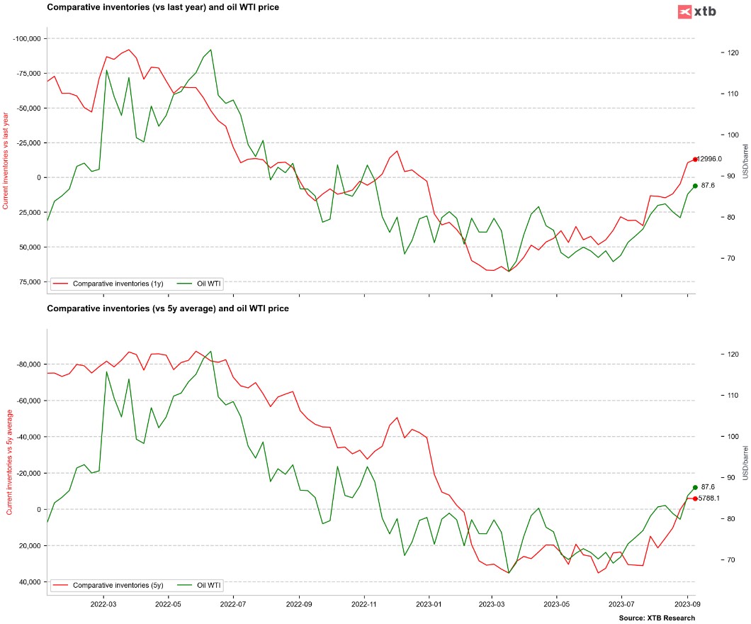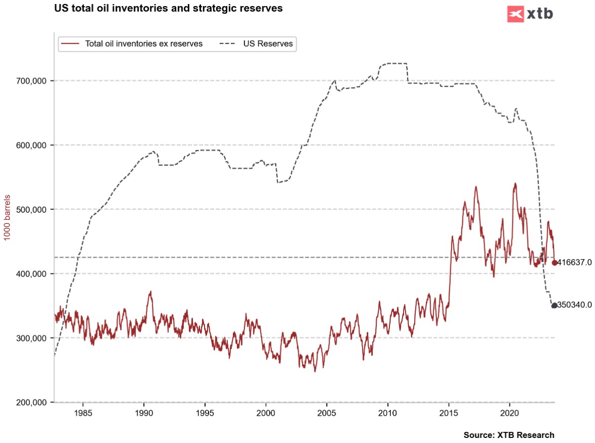 Stockpiles are likely to fall to their lowest level since 2015, looking at the lack of available additional free supply. The US can no longer draw on reserves as it did in 2022 and early 2023.Source: Bloomberg Finance LP, XTB