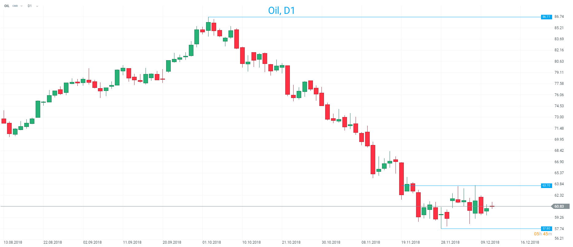 Oil remains confined to a roughly $6 range from 57.80-63.70. A break out of this consolidation could well lead to the next sustained move. Source: xStation
