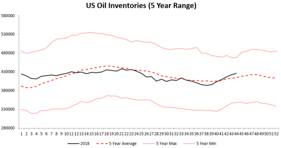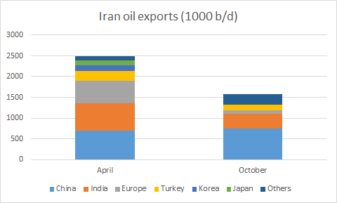The key reason is Iran. Iran used to export around 2.2-2.3mbd of oil before the Nuclear Pact has been broken and there were concerns that exports could drop to as low as 0.8mbd. However, just before the sanctions kicked in, the US administration granted waivers to 8 countries. Some of them, like China, are required to trim imports but some that have already stopped buying from Iran (Japan, South Korea) are allowed to return to the market. Consequently Iranian exports may not drop much more from the current 1.5mbd.