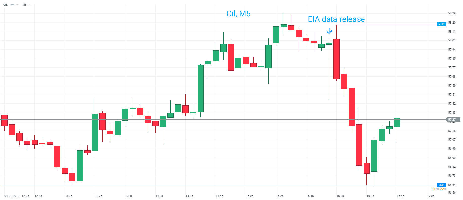 Oil dropped fairly sharply after the release, with the market plunging 150 ticks in half an hour. Source: xStation