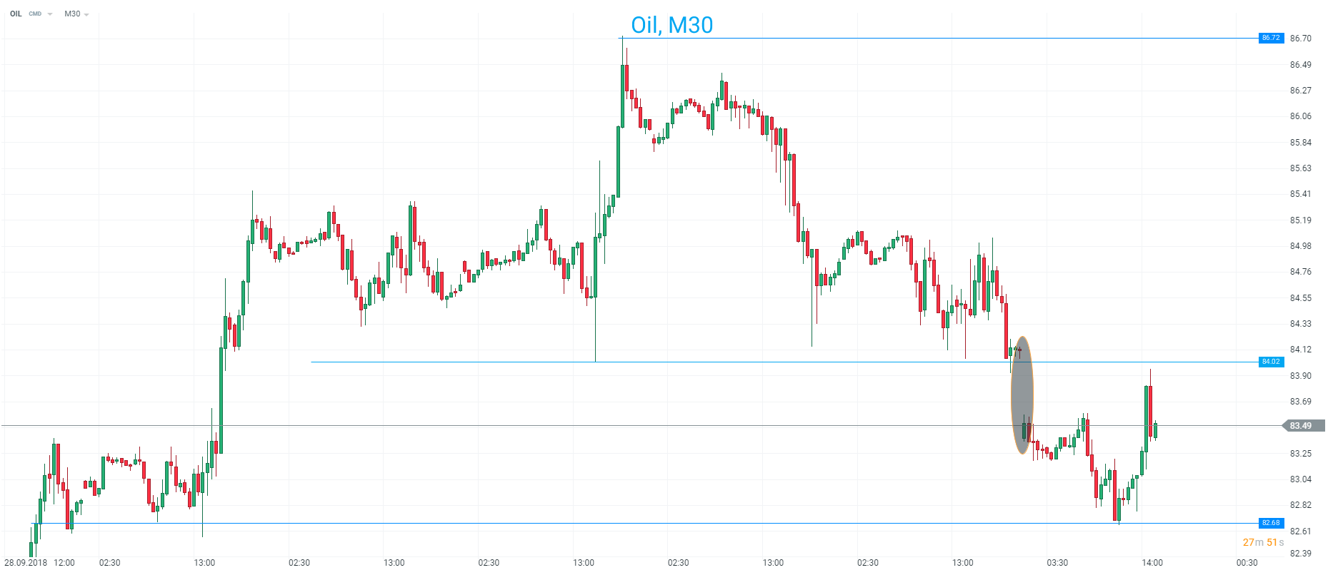 Oil gapped lower by around 50 ticks on the open after the weekend and continued lower before finding support near prior lows of 82.68. Since then the market has bounced and come close to closing the gap. Source: xStation