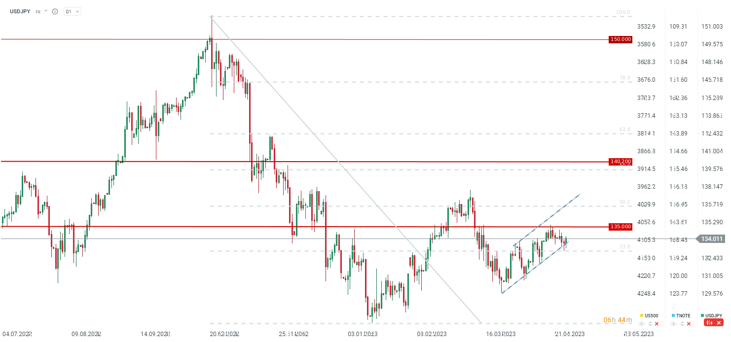 If the BoJ doesn't surprise, it could even be possible to go out near 135 pt. before the Fed rate hike decision, but thereafter the pair will largely depend on the Fed overall policy and it's 'hawkishness'. We believe that despite the pro-inflationary GDP data, the US dollar should start losing in the next few days. Confirmation of this would be a move below the local minima of mid-March. Source: xStation5