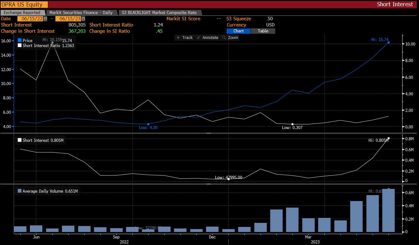 Short interest ratio on Opera shares is still relatively low despite shares rally. Source: Bloomberg