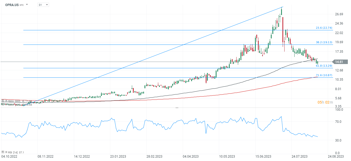 Shares of Norwegian technology company Opera (OPRA.US) are already losing nearly 50% from their July peaks, when the euphoria around AI development was at the peak. In the fall of 2022, the company announced a partnership with OpenAI, the Microsoft-backed company behind ChatGPT. Despite yesterday's unveiling of the Aria browser, in which it has implemented broad AI options, the company's shares have not budged and are deepening declines of another 2.5% today. Next Thursday, August 24, the company will report results a day after Nvidia's quarterly report (NVDA.US). Opera had 336 million active users in Q1 2023.
