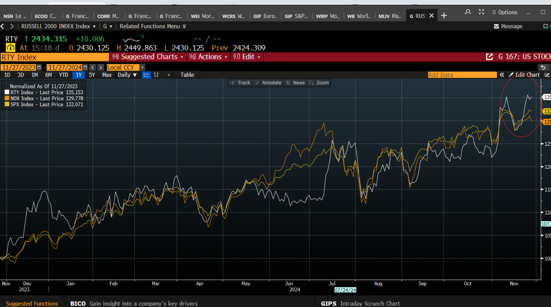 As the focus shifts to the US retail sector and the strength of the US consumer, it could be a very good Black Friday, which is already expected to be record-breaking. A better-than-expected performance could see further stock market gains. As we move into the final weeks of the year, a strong Black Friday may boost the wider stock market, which has started to outperform the US tech giants, as you can see below.
