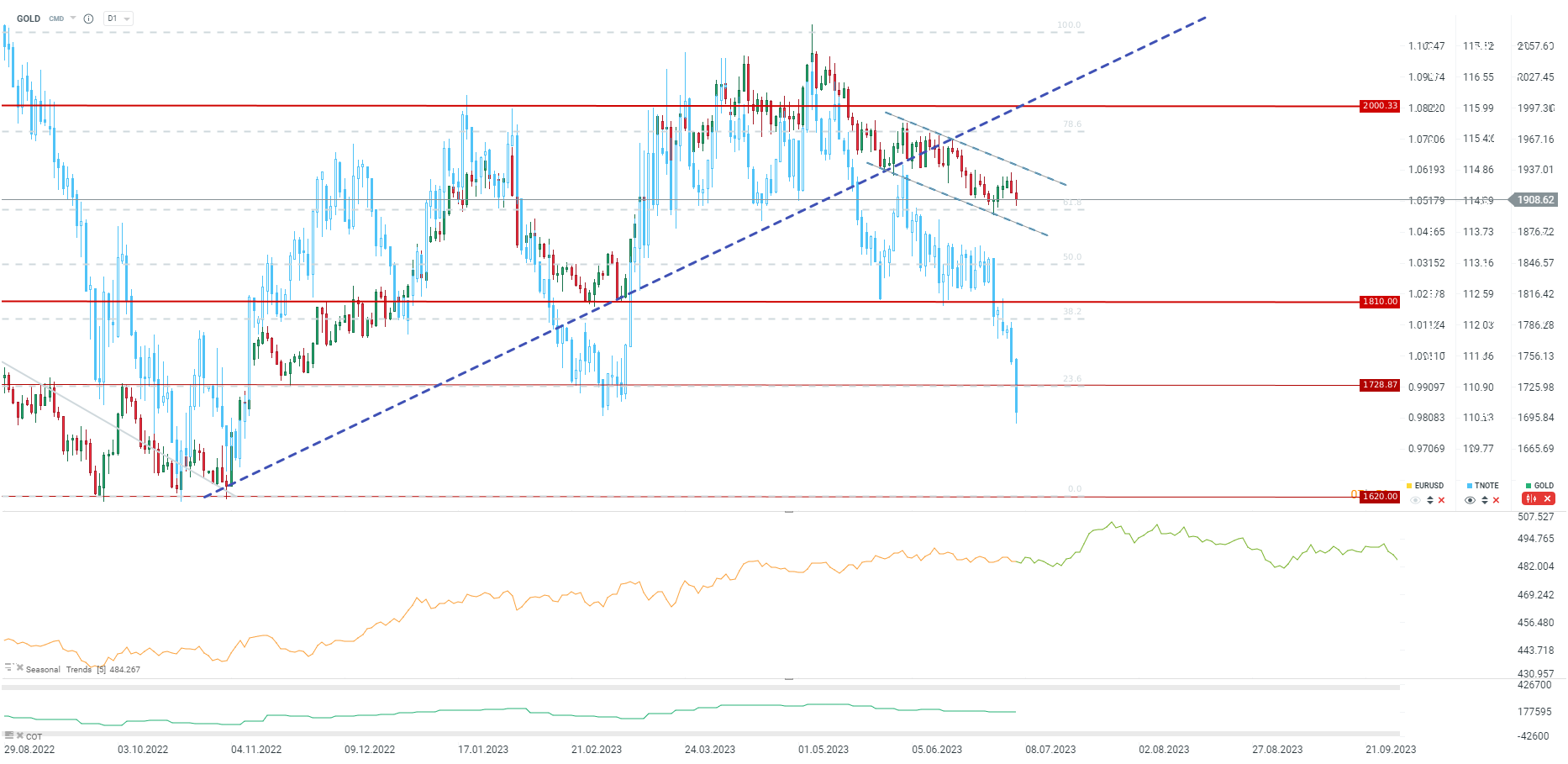 Złoto podchodzi dzisiaj do testu okolic 1900 USD za uncję. Źródło: xStation5