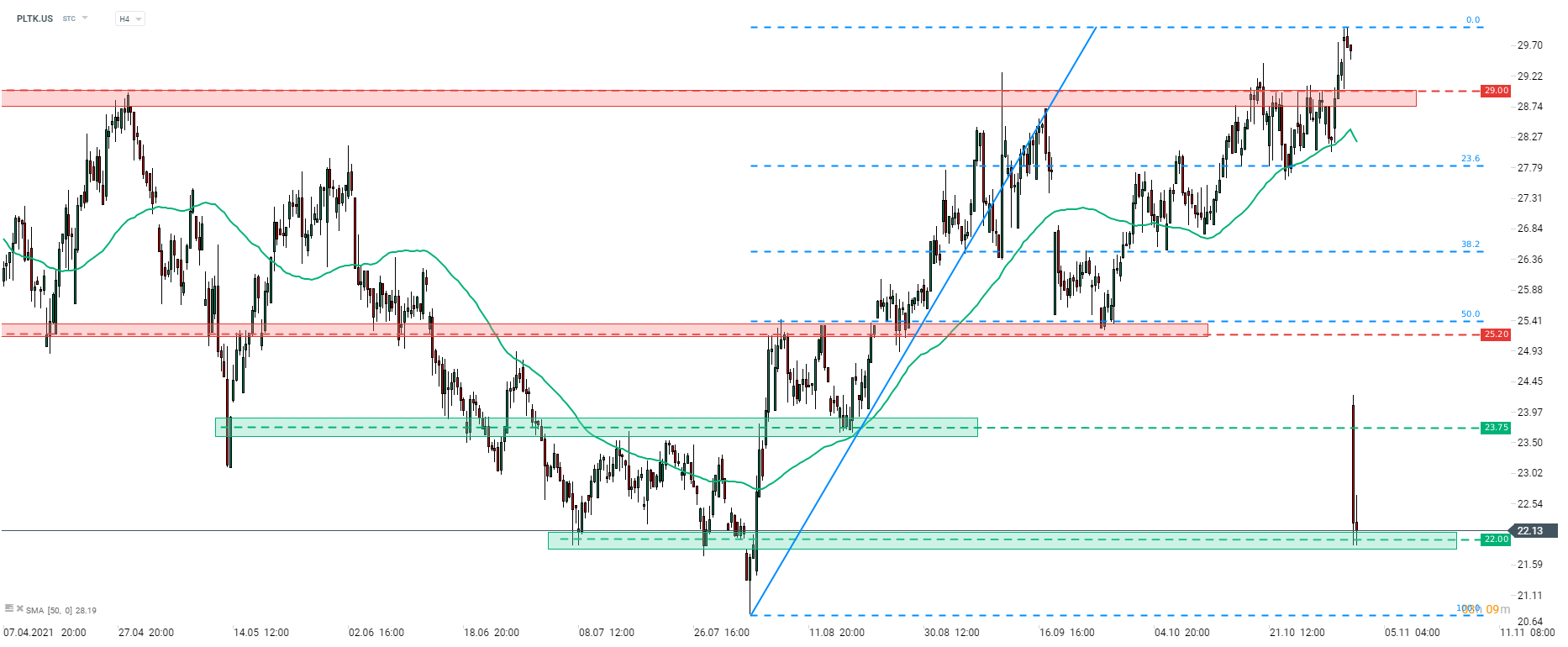 Playtika Holding (PLTK.US) is one of the worst performing US stocks today. Company shed a quarter of its valuation following the release of a Q3 earnings report that the market saw as disappointing. Revenue in the third quarter of 2021 reached $635.9 million, below the median estimate of $662.4 million. Net income dropped from $119.9 million in Q3 2020 to $80.5 million in Q3 2021. Adjusted EBITDA dropped from $261.4 million to $247.8 million. Company expects full-year revenue to reach $2.57 billion, down from a $2.6 billion forecast released back in August.