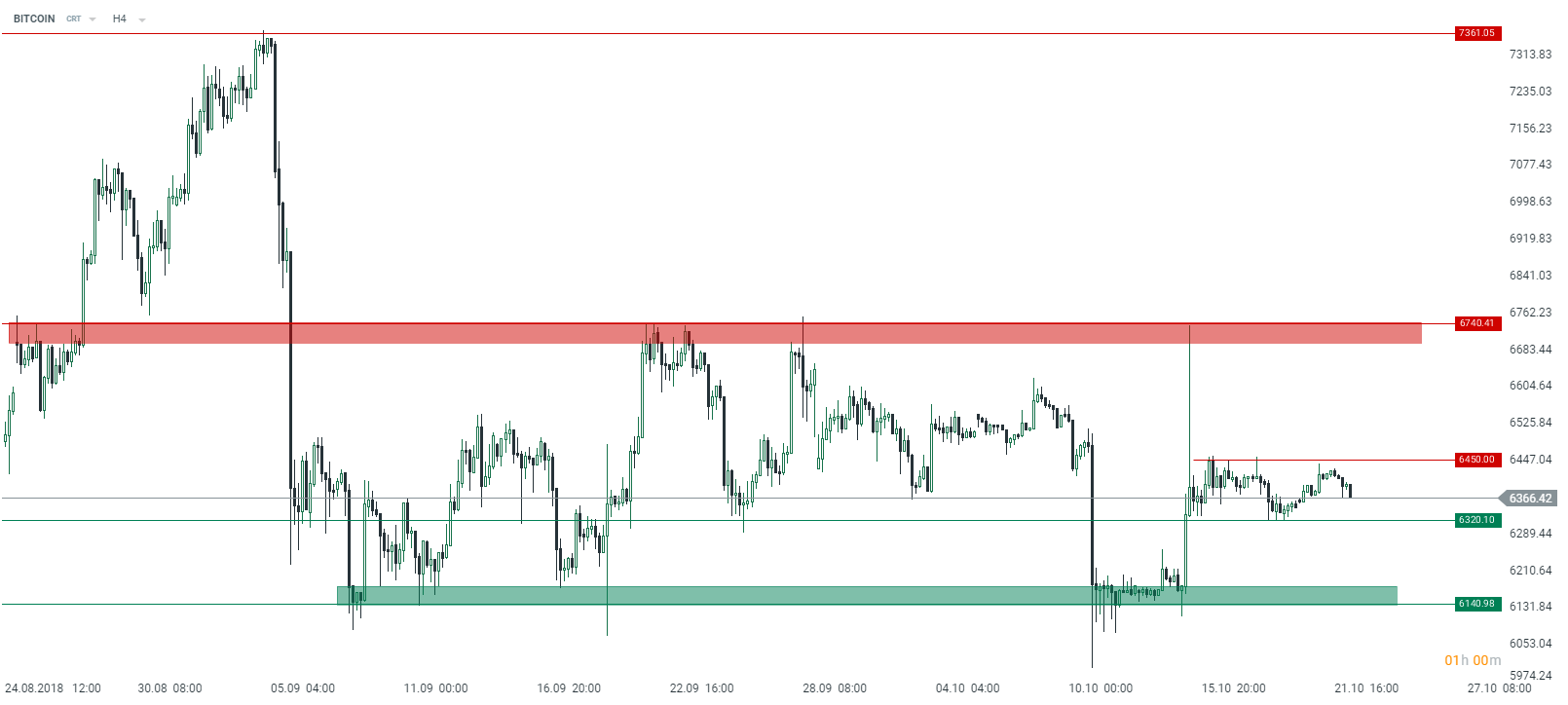 BITCOIN is trading within a broad range between $6740 and $6140. In recent hours the price has bounced off the resistance placed at $6450 and therefore a downward move at least toward $6320 is on the cards. Source: xStation5