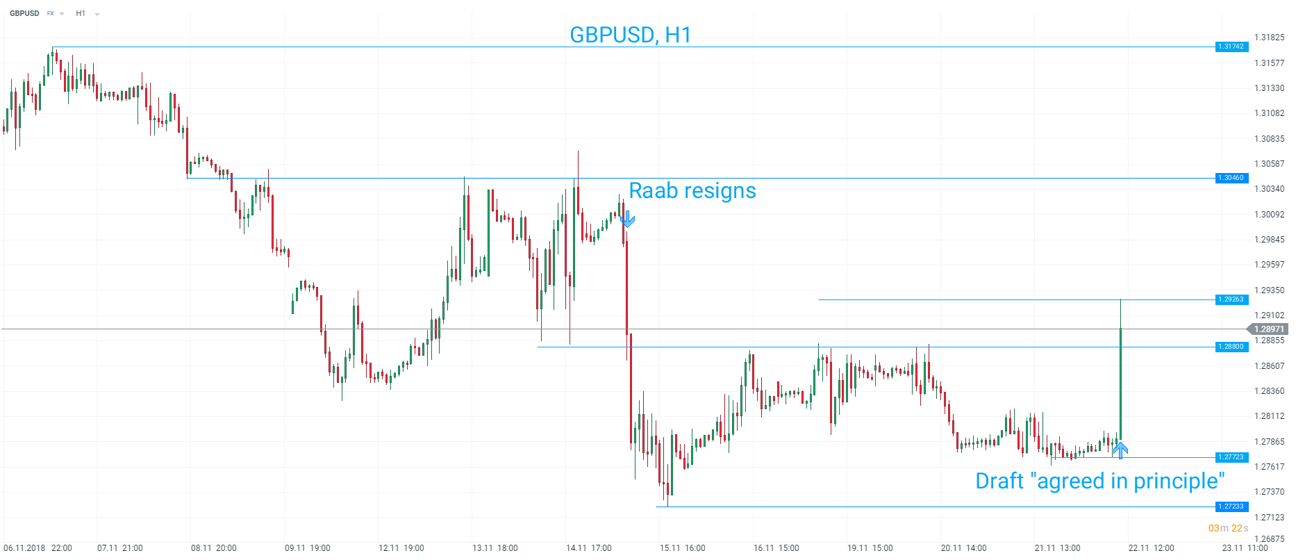 GBPUSD has spiked through prior resistance on this news but still remains below the level it traded when Brexit secretary Raab resigned. Source: xStation