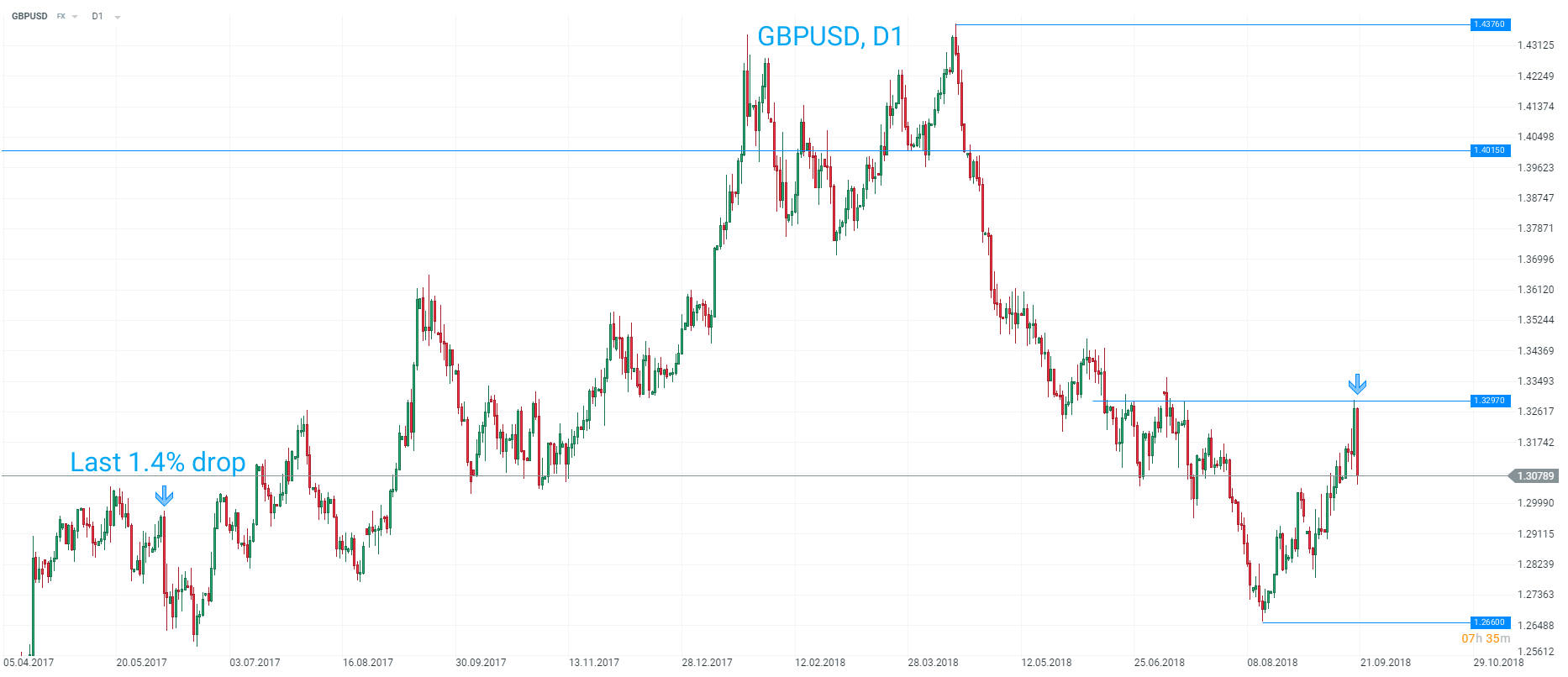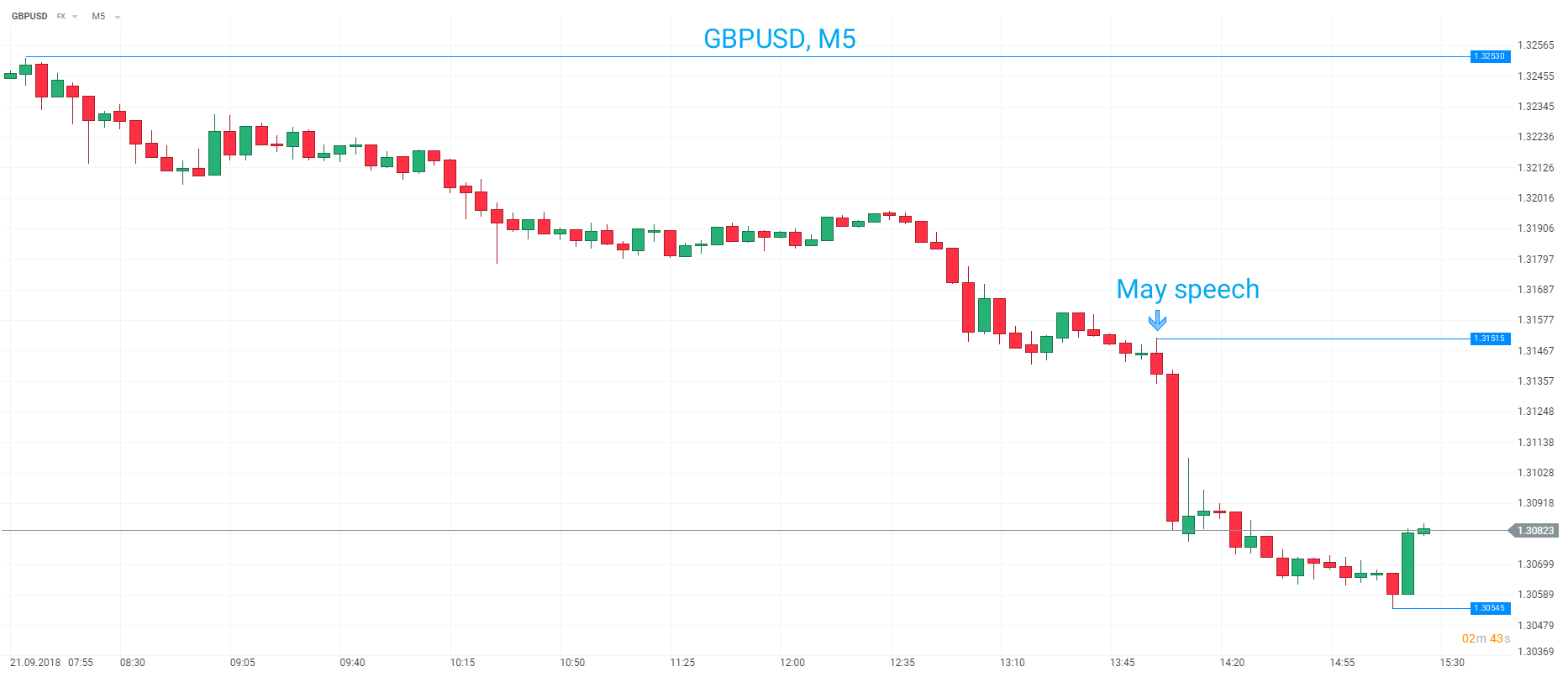 GBPUSD was already lower on the day due to remarks from elsewhere that the Salzburg meeting wasn’t a success and a resurgent USD before May’s speech sent the market sharply lower. Source: xStation