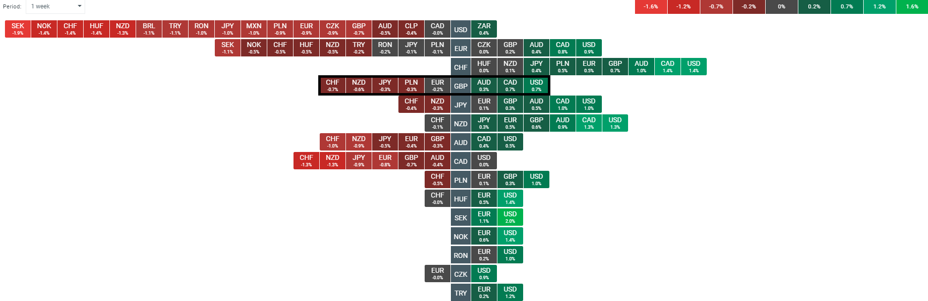 Despite all the headlines, the pound is actually little changed on the week on the whole, falling lower against the US. Source: xStation