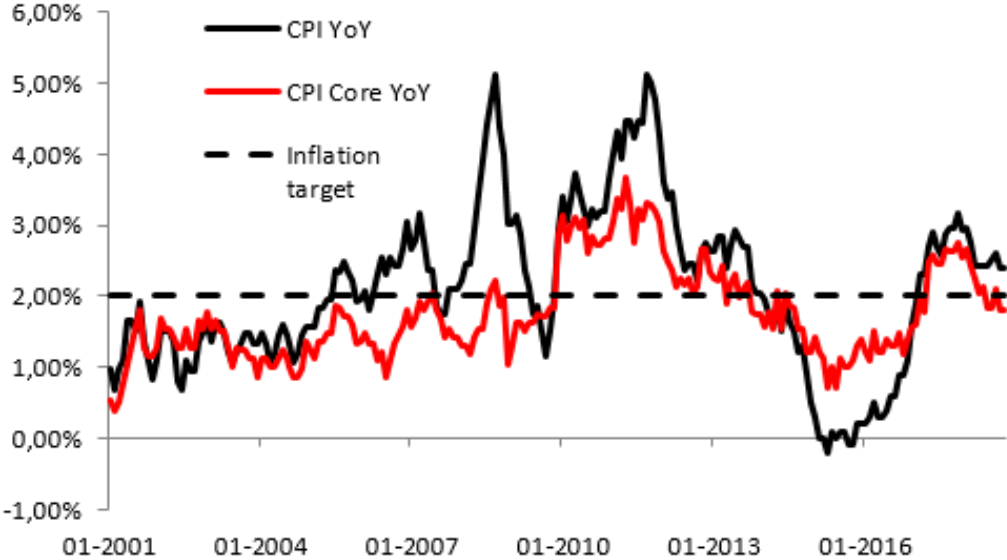 The latest employment and inflation figures could well be seen to suggest that in more “normal” times a rate hike from the BoE would be in the offing. However, given the ongoing Brexit uncertainty this remains distinctly unlikely and the Bank will likely appreciate the latest inflation figures, as while they remain above target they don’t pose a particularly pressing concern given their recent trajectory.