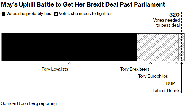 It looks a stretch for PM May to get the requisite support for this deal to pass it through parliament with votes needed from several unlikely source. Source: Bloomberg