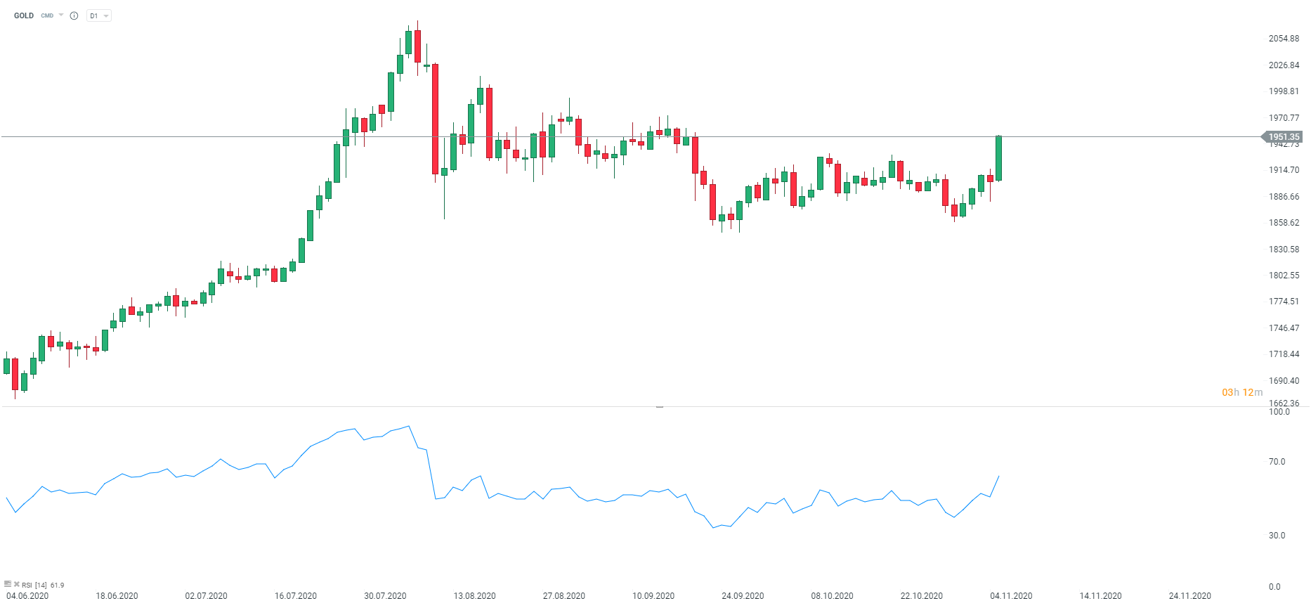 Gold meanwhile continues to increase against the weak dollar. The Fed is "printing" and will be "printing" and urging Congress for more fiscal support. These are strong reasons for the continued appreciation of gold, as it was in 2008-2011, but this time on a much larger scale. Source: xStation5