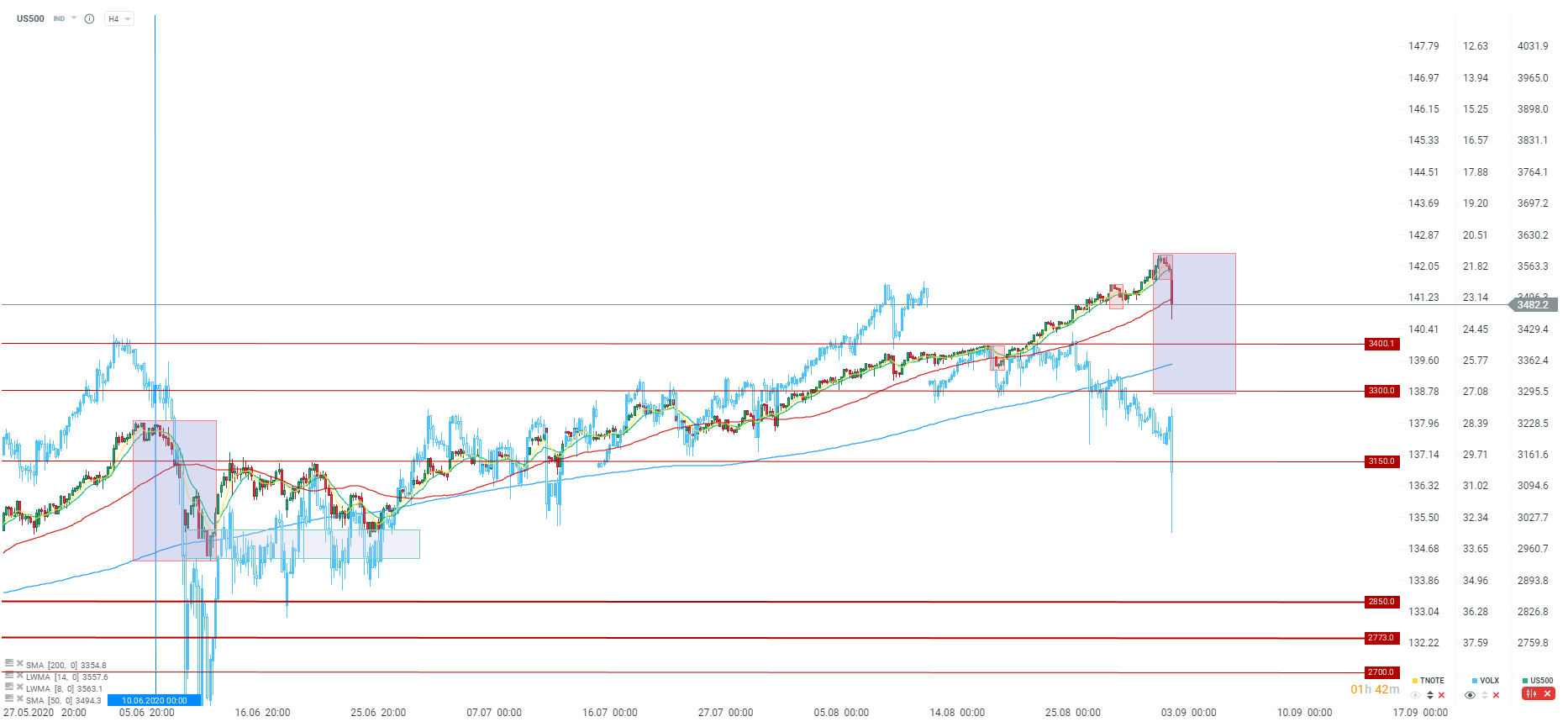 Yes! Of course, with such a rapidly rising market, it was very difficult to indicate when such a moment would come. One of the first warning signals was a very strong increase in the VIX index, which took place on August 27. Currently, the scale of growth of the VIX is very similar. The contract for VIX (VOLX on xStation5) rose to 33 points, while in the previous weeks it averaged around 23-25 points (which in the historical context is still a high level indicating a lot of uncertainty in the markets).