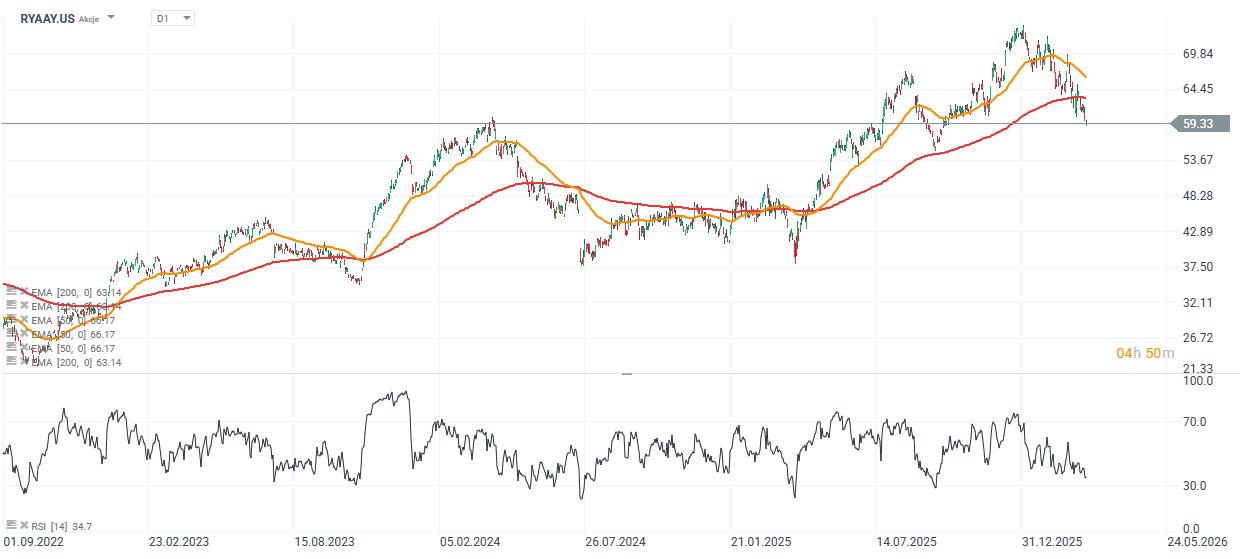 Any large-scale jet fuel shortage would likely be felt directly by passengers. Easter travel, charter operations, and even international air ambulance services could face significant disruption if the situation deteriorates further. As we can see, there is a good reason for the Ryanair shares to decline. However, potential deescalation may support Ryanair and make the stock set to rebound.