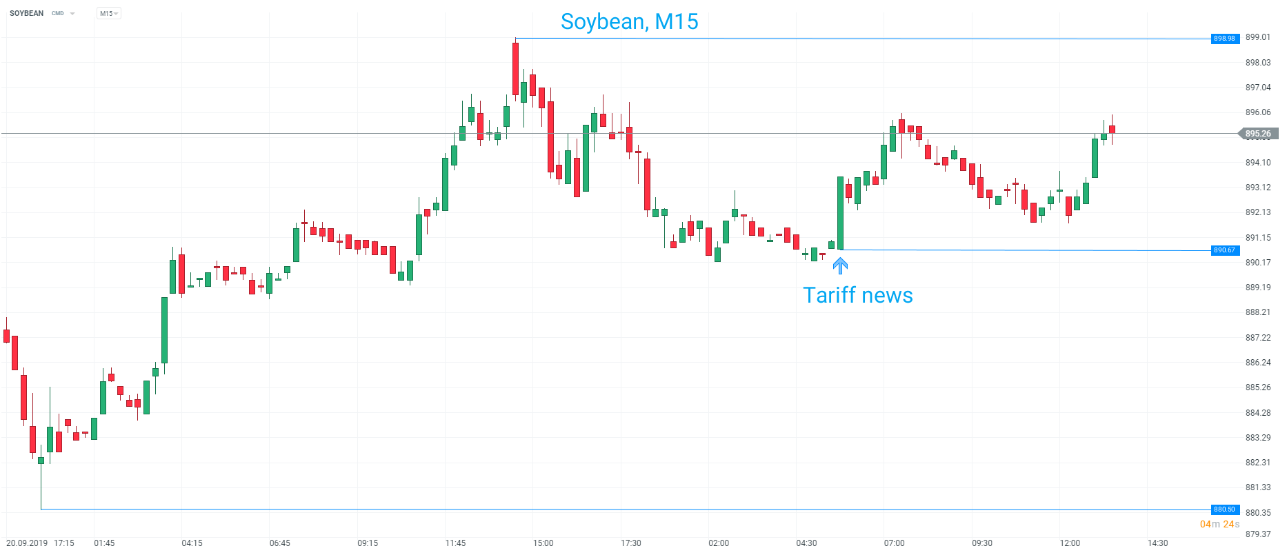 After the initial spike higher there’s not been any major follow through to the upside in Soybeans after the latest tariff news. This could be seen to suggest that its impact on broader risk sentiment and US indices will be limited at best. Source: xStation