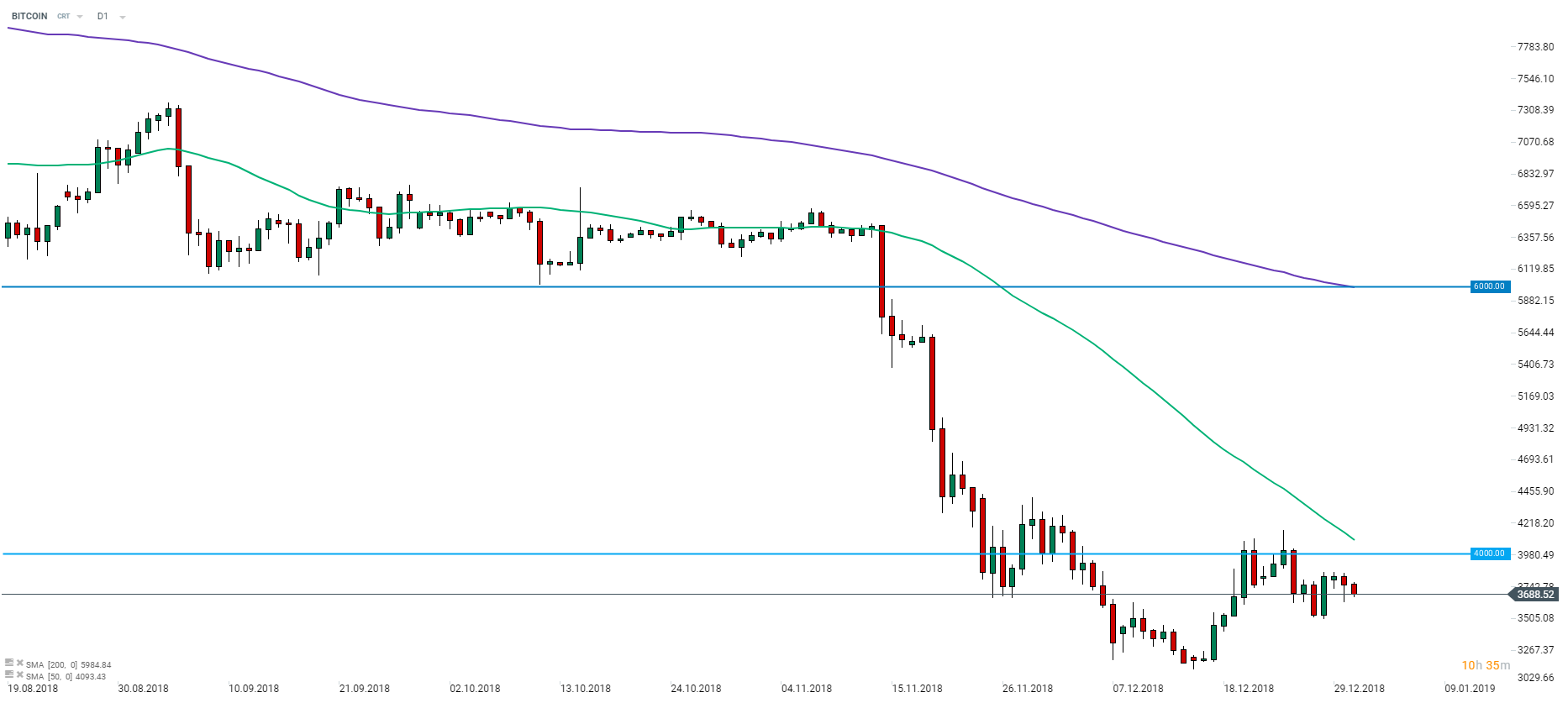 BITCOIN managed to rebound from the $3000 area but the recovery was halted by the resistance at $4000. As the coin is painting consecutive lower highs bears may continue to dominate trading on the Bitcoin market at the beginning of the next year. Source: xStation5