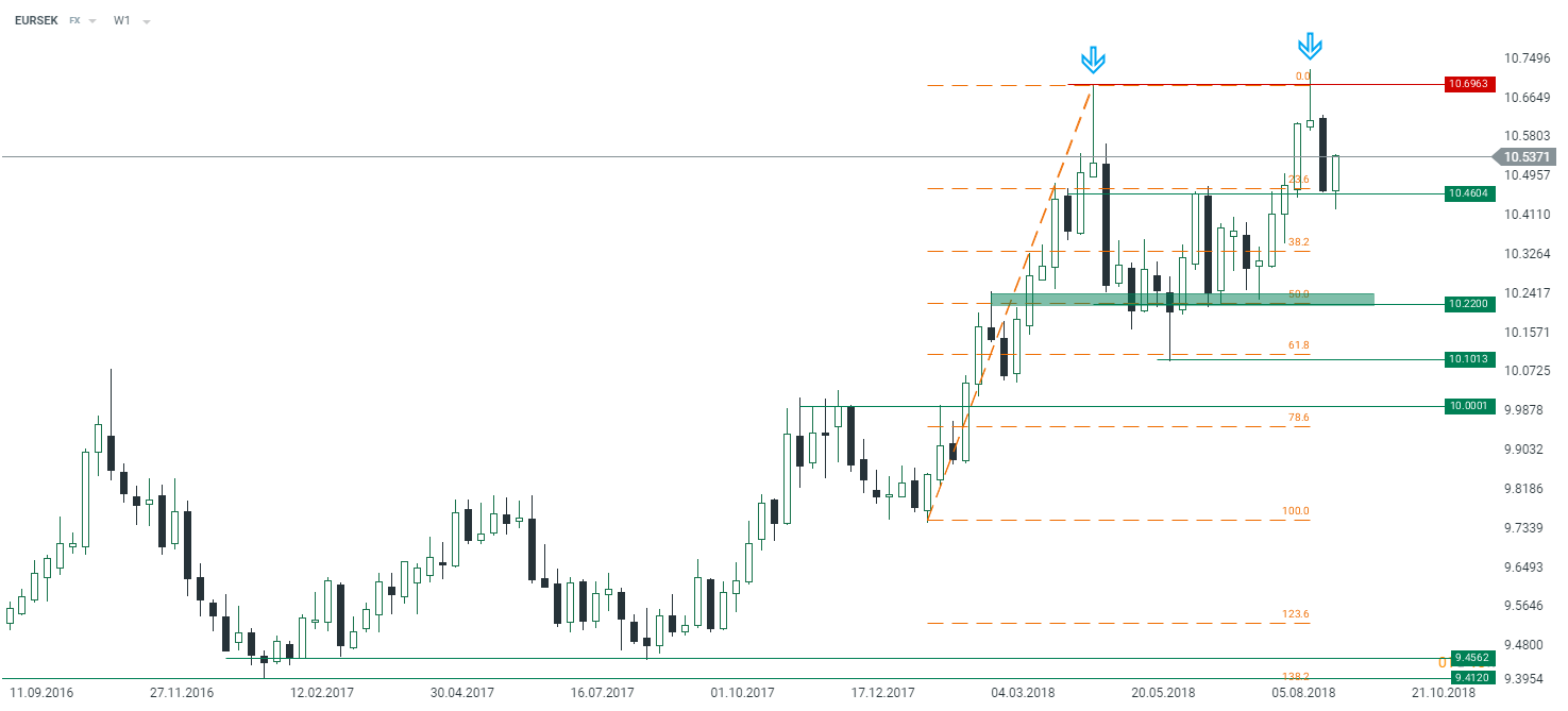 The EURSEK fell appreciably last week in anticipation of elections. Nevertheless, the pair has resumed rising since the beginning of this week in response to the inconclusive elections’ fallout. Thus, the most probable scenario for the pair right now seems to be climbing toward the crucial resistance in the neighborhood of 10.70 where investors may decide to book their profits launching a corrective wave afterward. Source: xStation5