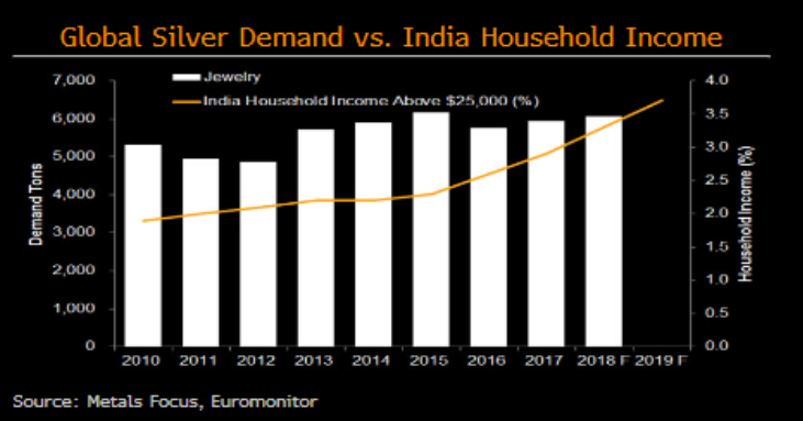 Higher expected household income in India may boost the jewelry demand. Source: Bloomberg