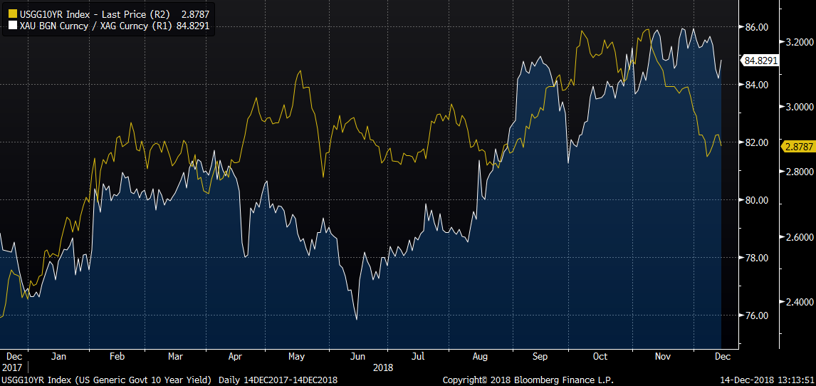 Based on historical movements of silver prices one may suspect that silver prices may have already bottomed out. The pace of rate hikes in the US is expected to slow in quarters to come and economic growth should lose some momentum next year. Seasonally, gold and silver prices tend to rise when a year kicks off and we think that this scenario could repeat at the beginning of 2019.