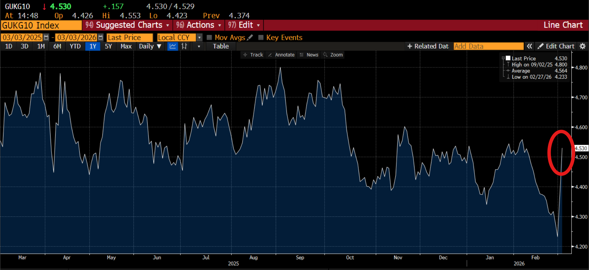 The main takeaway from the statement is that growth has been revised down for this year. The OBR now sees GDP for 2026 at 1.1%, down from 1.4% in November. Even the downwardly revised forecast is at risk if the Middle East conflict drags on, as a sustained rise in energy prices would be damaging to the UK’s already slowing economy.
